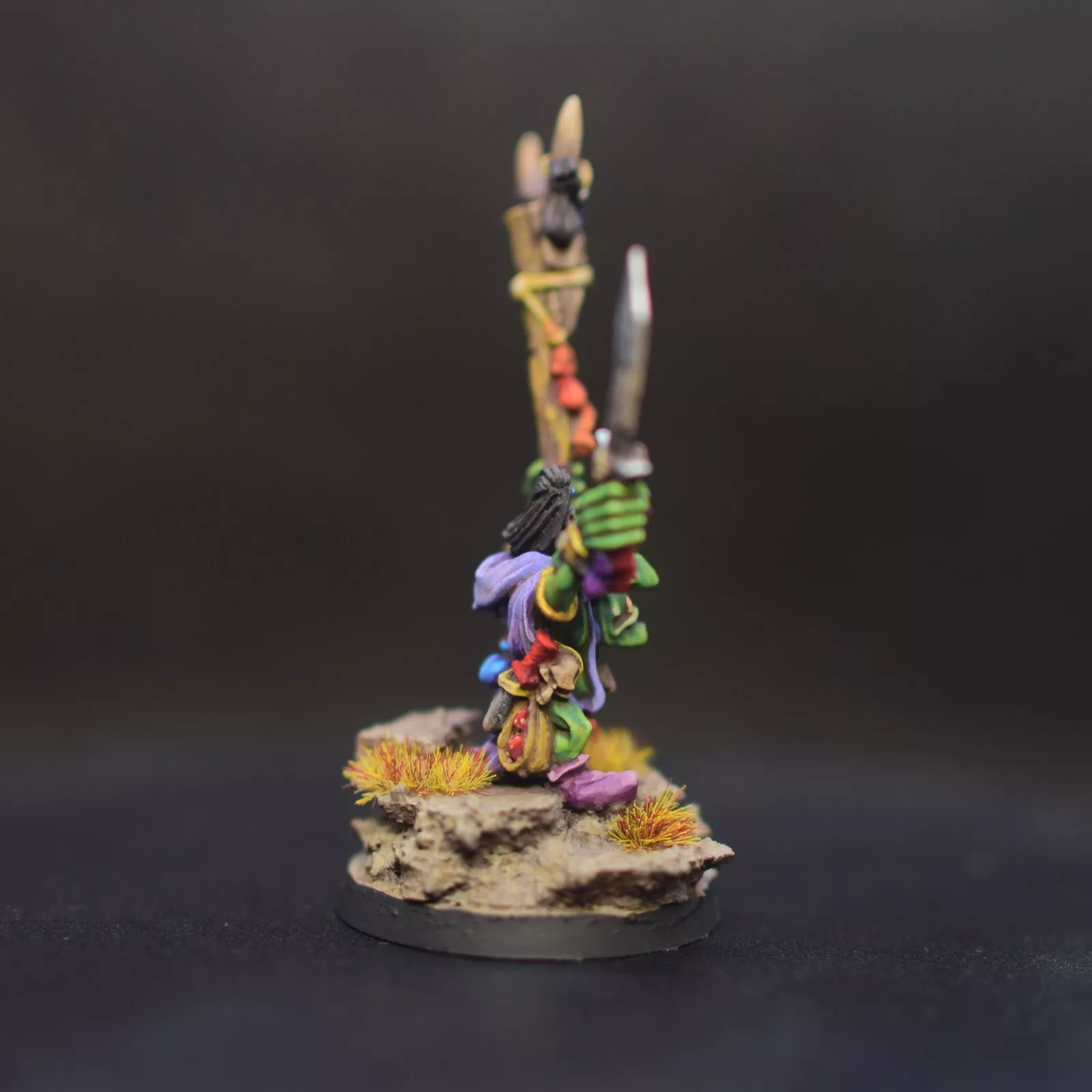 Un tuffo nel passato con questo leggendario sciamano in metallo. Un pezzo fuori produzione riportato in vita con una pittura vivida e una base desertica.